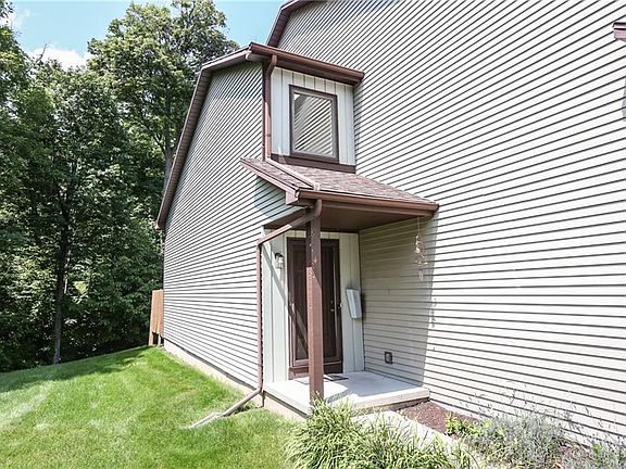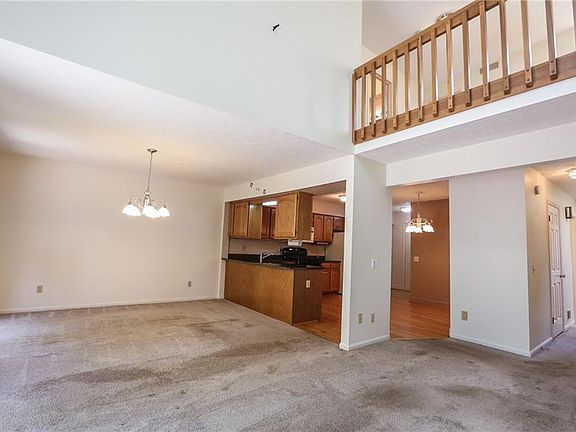 OPEN HOUSE Sun 8/1 12:00-2:00 p.m. Spacious end unit with over 1,700 sq ft, an oversized 12 x 16 deck backing to woods and attached TWO CAR garage! Beautiful eat-in kitchen with granite countertops, deep stainless steel sink, gorgeous hardwood floors and walk-in pantry. Appliances included! New stove (2019). Wonderful extra space in large formal dining room. Convenient first floor laundry and half bath. Large great room with skylight, cathedral ceiling and gas fireplace! Two nice size bedrooms and a loft upstairs, PLUS two full baths! Chairlift can stay if Buyer desires, otherwise, it will be removed. Furnace (2008), hot water tank (2014). Lots of closet space, central vac. Delayed negotiations until Tuesday, August 3rd at 1:00