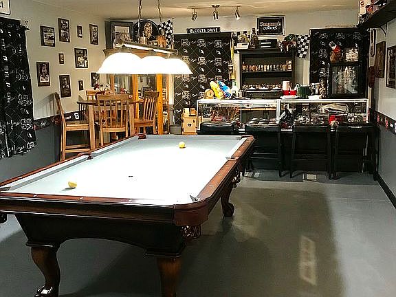 3 bedroom one bath stainless steel appliances washer dryer 2 car garage closed in patio front deck large back deck mini barn huge pole barn across the street with finished pool room