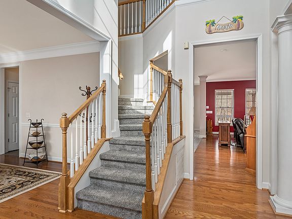STUNNING move-in ready home in Willoughby Station! 5 Bedrooms, 4 full baths! Impressive grand entryway w/soaring ceilings! Open kitchen & den w/stone fireplace, beautiful wood floors & HUGE eat-in kitchen! Room for 4 barstool & 2 more at the kitchen island! Tons of cabinets, counter & pantry space! Stainless appliances, double oven, Corian counters, tile backsplash, & tile flooring! Bedroom & full bath on the main floor perfect for a home office! Relax on the back covered & screened deck!