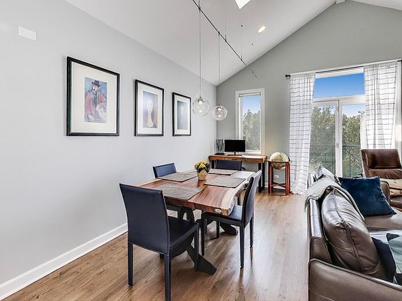 Stunning 2 bedroom, 2 bath Penthouse in brick 3 flat with private roof deck on beautiful tree-lined street in Wrigleyville/ Lakeview! This sun- drenced condo features soaring 14 foot vaulted ceilings with skylights in the living room, dining room and kitchen and 10 foot ceilings throughout the rest of the unit. Beautiful gut rehabbed kitchen with peninsula seating, quartz counters, custom cabinets and high end appliances. Stylish gut rehabbed hall and primary baths. Additional amenities include, juliette balcony, hardwood floors throughout, wood burning fireplace with gas starter (behind the tv), prof. organized closets, addl. storage, garage parking and large rear deck leading to awesome private rooftop deck with 360 degree unobstructed views of the City, Skyline and Wrigley Field. Fantastic location, walk to Wrigley Field, Southport Corridor restaurants, shops, entertainment and both Red and Brown line "L" stops.