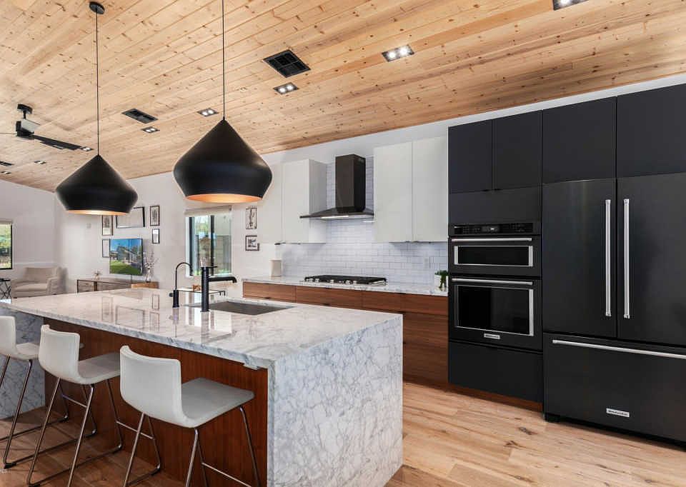 Newer construction (2016) in the FQ Story Historic District, with modern finishes, OWNED SOLAR, and a separate GUEST QUARTERS. The kitchen/living is open with a vaulted natural wood ceiling, large island with marble waterfall countertop, gas cooktop, pantry, and sleek appliances. Bar and wine fridge make kitchen perfect for entertaining. Split floor plan offers laundry room and master suite with dual walk in closets. Studio guest quarters, in addition to the 3/2 main, has bath, kitchenette with refrigerator and its own laundry hookup. Front yard is turf, and backyard has REAL GRASS. Electric vehicle gate provides private parking for 2 vehicles. Listed square footage includes main + guest quarters. Be sure to see the 3D MATTERPORT VIRTUAL TOUR in photos section by clicking on virtual tour