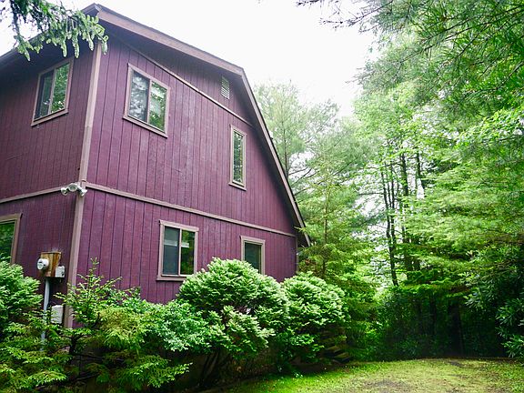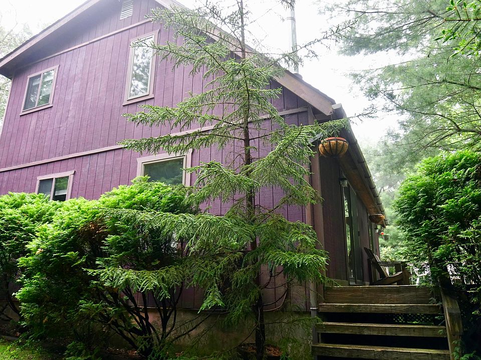 ULTIMATE PRIVATE POCONO RETREAT, Across the street from the LAKE AND BOAT LAUNCH. This Chic Country home in the Pocono Mountains boasts Three bedrooms and two baths, with two private driveways, hardwood floors, CATHEDRAL CEILINGS, Open Floor Plan and beautiful wood beam ceiling accents!! Great screened porch and large deck to entertain and enjoy your privacy! Propane stove heats house in the winter efficiently and LOW TAXES. Landscaped with a great play yard!!! ALL this in an amenity filled community and commuter friendly location.