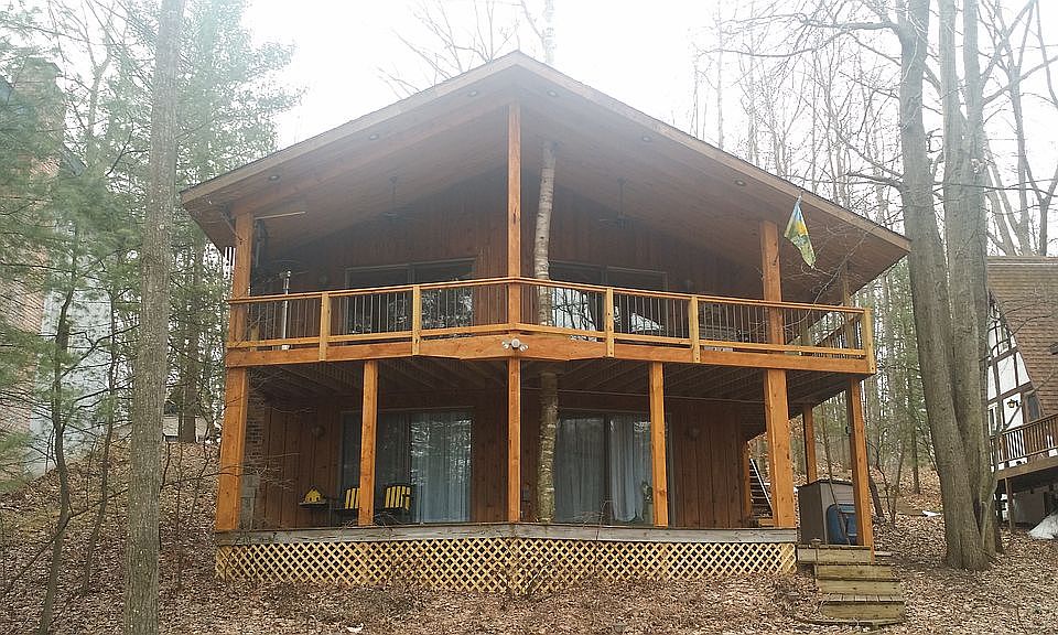Completely remodeled 4 bedroom with a covered, wrap around open deck on a private lake. Woodworking shop upstairs above the garage at street level. Hickory kitchen and bathroom cabinets. Addition of garage, family room/man cave and workshop done in 2012. Deck on the beach with a tiki bar, fire pit, dock and sauna.