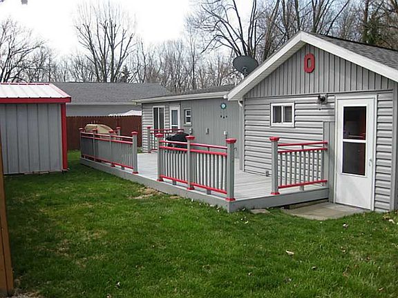 Enjoy loads of space in this unique 3 bedroom 2 bath ranch, only 2 short blocks to beautiful Indian Lake. This is the perfect resort home in move- in ready condition. The master suite is equipped with a walk-in closet and a built-in entertainment center. Fantastic corner lot and a great patio deck for summer fun.Plenty of storage in the workshop/outbuilding. With this fantastic location you are a short golf cart ride to the state docks, shopping, and the Moose and Eagles Clubs.Interior space, beautiful lot, great location, take a look you will love the Buckeye home.