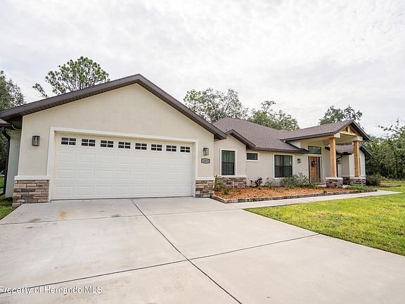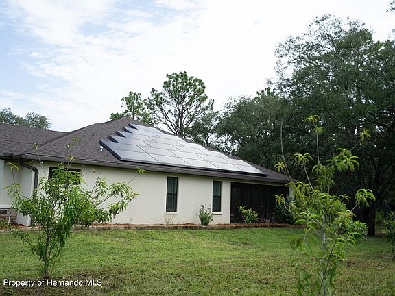 Active Under Contract - Accepting Back Up Offers Welcome to 11420 Linnet Rd, a stunning and modern residence in the desirable Royal Highlands neighborhood of Weeki Wachee, Florida. Built in 2020, this relatively new 5-bedroom, 3-bathroom home spans 2,268 square feet and sits on a spacious 1.15-acre lot, offering both luxury and sustainability. Step inside to discover an open layout that creates a sense of spaciousness, making the home feel even larger than its already generous size. This single-story home boasts elegant design features, such as a mitered glass window in the dining room and a large covered and screened patio area, perfect for entertaining or enjoying the serene outdoors. The air-conditioned 2-car garage provides ample space for vehicles and storage, making it a versatile space. The property includes a prepped-for-irrigation micro orchard with over 10 fruit trees, offering the potential for fresh produce. Energy efficiency is a key feature with the inclusion of 11.6KW of solar panels, significantly reducing energy costs and promoting a sustainable lifestyle. Enjoy the privacy of a large backyard bordered by county-owned property that is not buildable, ensuring a tranquil and secluded environment. Additionally, this home is conveniently located close to most amenities in Hernando County, making daily errands and activities easily accessible. Don't miss this rare opportunity to own a piece of paradise in Royal Highlands. Schedule a viewing and make this exceptional property your new home!