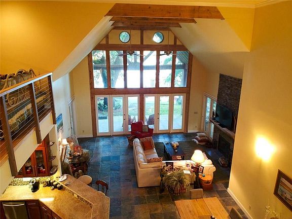 NEW PRICE.... Builders Personal Home on Fowl River. Talk about a River Home this is it, could grace the cover of Southern Living Magazine. Upon entry the Grand Room encompasses the living area with a massive fireplace and the dining area,large enough to seat 20+. The chef's kitchen is open to the Grand room with center island and upgraded appliances,including a 5 burner gas cook top and double ovens. Adjacent to the kitchen is the Wet bar with wine cooler and separate ice maker. All 5 bathrooms have stone and glass enclosures. The Master Suite includes an office, 2 separate vanity areas. The Master bath has river rock flooring with a soaking tub and separate roman shower. Upstairs there is a game room and a loft family room that could be the 4th bedroom. The home sits high overlooking huge oaks and the river. A covered boat lift and deck area completes this picturesque setting.