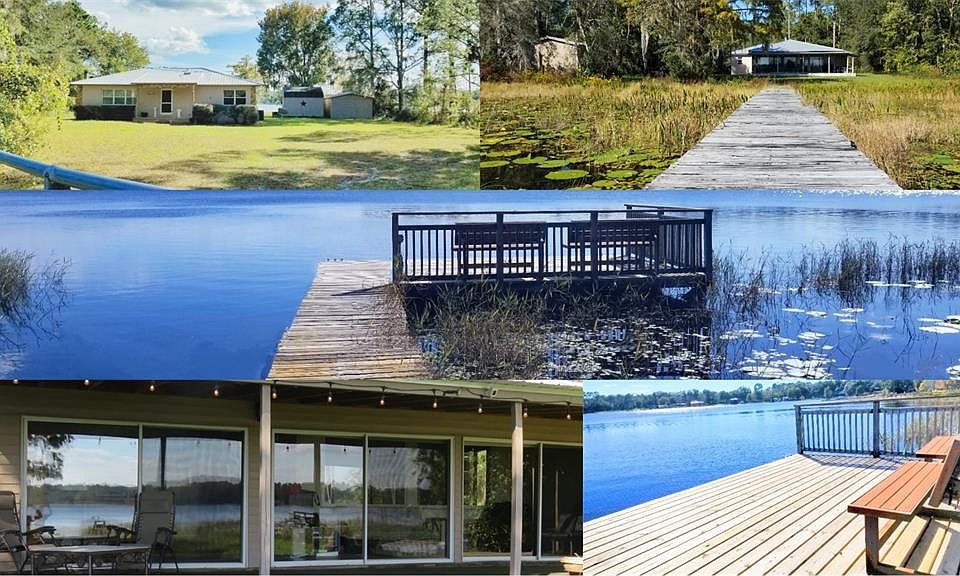 ATTN!! RARE Find. Escape City Life ...CHARMING * DREAM "LAKE HOUSE" with 155' WATER FRONT on picturesque SPRING Fed "DEERBACK Lake". Active "Island Lake" literally around the corner for swimming, Skiing, Boating, Fishing, & Fun. Horse shoe lake even closer. You get your QUIET "Private" lake to enjoy with a HUGE panoramic view of the LAKE. Enjoy all the Water sports within literally a couple minutes. This is an incredibly rare Opportunity! Do NOT wait to see this BLOCK Construction home with METAL ROOF. VLP & tile throughout. Home has an OPEN kitchen with plenty of cabinets & counter space, "COFFEE BAR ", center island Breakfast Bar and separate Breakfast room over looking the lake. Theres even a VIEW from the kitchen's passthrough AND even the Laundry room! Custom Kitchen Flagsyone walls, hand carved wood doors...HUGE Florida Room overlooking the lake is also under air , Both living areas have REAL WOOD burning fireplaces. This House does not Disappoint! Gorgeous Views of the Sparkling "Spring Fed "lake from your secluded open back patio under roof. Your Dream Workshop AND Storage shed. Boat & FISHING DOCK with two benches. Your "Lake House" Dream can begin today. Its Everyrhing you are looking for and MORE. Wide Open floor plan. Suited for Sunrise Coffee, Night time Romance AND plenty of room with expanded Florida room for FUN with Family & Friends! (RESIDENTS ONLY Lake access & yes, Motors allowed on Deerback Lake) Country PRIVACY with the PERFECT location! But still close to modern shopping & dining. Theres also a Country Corner in the heart of small town "Fort McCoy" (crossings of hwy 315 & hwy 316 )with everything you need. Explore Ocala National Forest for Hunting, 4 Wheeling, Mudding, Horse back riding trails , kayaking, diving the springs, fishing...enjoy Lake Delancey , Salt Springs, Rodman Damn, Juniper Springs, Alexander Springs, Lake Bryant. Big & Small Lake Weir , World Famous Silver Springs & Rainbow Springs, the list goes on & on. Its all just a Short Drive away and of course for city life, find Ocala, "The Villages"- live events everyday / 365 days a year !..Drive to Gainesville, Mt Dora, Eustis or Orlando. BONUS! The luxurious World Equestrian Center in Ocala brings folks from around the WORLD for Equine Shows, Events,Fine Dining Concerts& Holiday fun. Bonus: floor plan adaptable for Air BNB max occupancy. No Hoa. No lease restrictions.