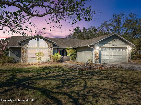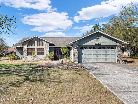 Active with contract accepting backups. Welcome home! This well-maintained Spring Hill home is adorable, with exterior stone accents and a screened front entry to enhance the curb appeal. Inside, the functional open floor plan unfolds from a modest foyer. Vaulted ceilings add volume and a sense of spaciousness to the living/dining room combo. Whether you're hosting an intimate family dinner, playing a round of Twister, or catching up on episodes of The Last of Us, you'll have plenty of room to relax or entertain. The family cook will enjoy preparing meals in the kitchen, which boasts a tray ceiling, stone counters, wood cabinets, a pantry, a breakfast bar, and a large eating nook. Your privacy is ensured with a split-bedroom floor plan; the master suite is your personal refuge. It includes a big walk-in closet plus separate access to the pool area. The ensuite master bath features a dual sink vanity and large step-in shower with a built-in ledge seat. The second and third guest bedrooms have brand-new carpeting and lots of closet space. All guest bedrooms share the guest bathroom, which has a tub/shower combo. And when you're ready to live your best Florida life, don your swimwear and grab your towel! The in-ground saltwater pool awaits, just beyond the screened porch and covered lanai. Sip a cool beverage in the shade or enjoy a meal al fresco before taking a refreshing swim in the heat of the summer. The screen enclosures overlook the big backyard. There's even a shed if you need additional storage for your belongings. No HOA fees or restrictions to worry about in this peaceful neighborhood, either. A centralized location in the heart of Spring Hill means you're close to everything, from shopping and dining to parks and entertainment. That includes locally-owned favorites like Papa Clyde's Two Ice Cream, Jam's Cafe, Copacabana, La Plazita, and more. Head to Murphy's Market for the freshest produce and amazing deals at the deli and butcher's counter. Rotary Centennial Dog Park, Veterans Memorial Park, Delta Woods Park, and Weeki Wachee Springs State Park with its small craft launch and world-famous mermaids all fall within a 5-mile radius. Popular swimming spots like Roger's Park and Pine Island Beach are only a short trip northwest. An entrance to the Suncoast Parkway/Veterans Expressway isn't far, so Tampa and its amenities, like the international airport and beaches, are easily accessible. Don't miss your chance to see this home - make your appointment to view it today! Active Under Contract