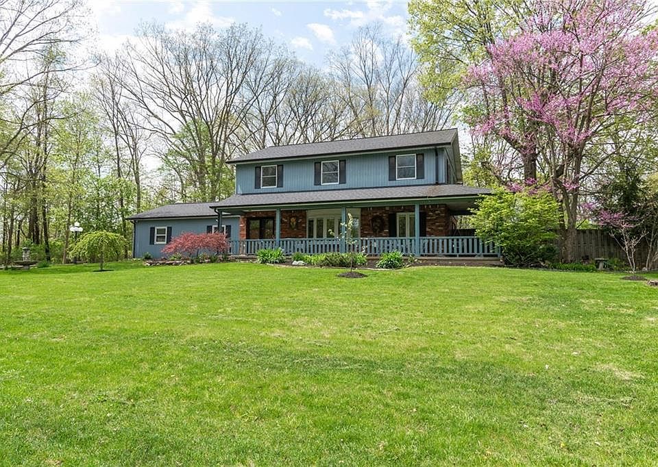 Don't miss this rare opportunity to own a home in Donnybrook Woods, built by Paul Estridge, Sr. This traditional 4 bed/2.5 bath with full bsmt feat fam rm w/hwd floors and brick FP sits on a large, private lot that abuts Central Park in Carmel w/access to the park's trail system, which connects to the Monon Trail. The fully fenced backyard features a newly renovated in-ground pool, greenhouse, large raised garden, built-in fire pit w/seating area, and an oversized patio. Mini-barn with covered porch and 220 electric can also double as workshop. The wraparound front porch is ideal for watching the peaceful wildlife in the surrounding woods. The home has newer Pella windows, and was recently painted and is ready for a new owner to love it!