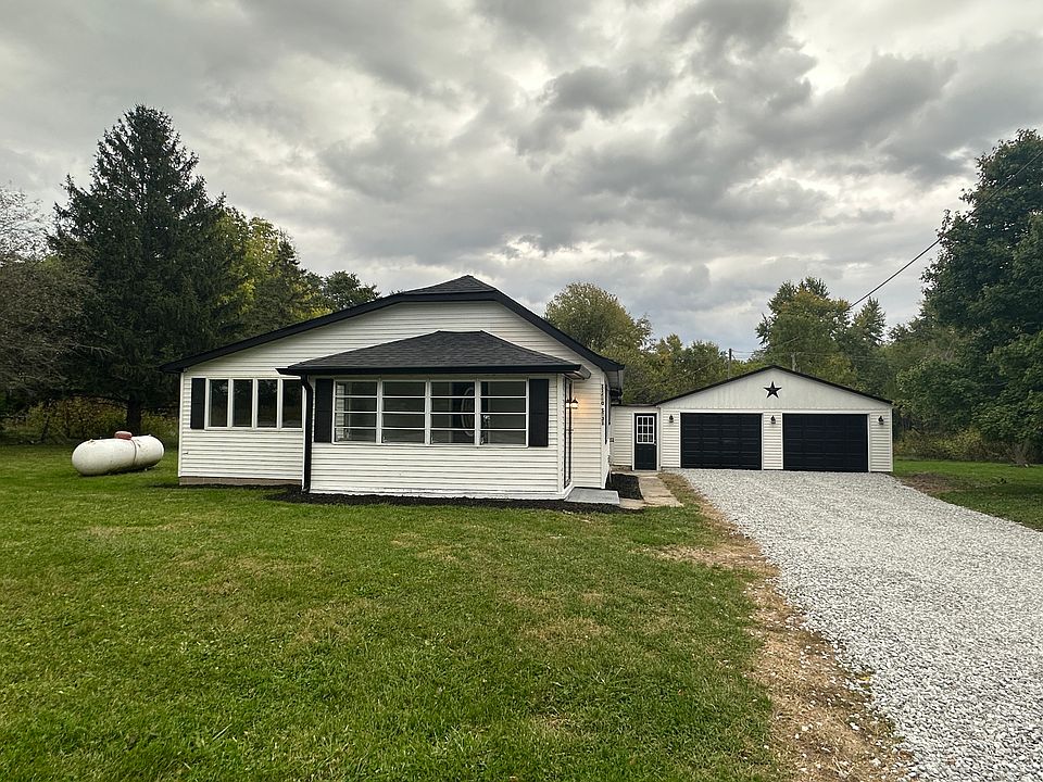 This spacious 1,471 SF, 3 BR, 1.5 BA ranch home w/ 2-car attached Garage has been COMPLETELY REMODELED FROM TOP TO BOTTOM! Sitting on a .59 acre lot w/ a spacious backyard backing up to the woods, you'll love this country location. Here's a list of what's BRAND NEW: roof, gutters, central A/C, plumbing w/ pex-manifold system, well pump, flooring, paint, ceiling fans, light fixtures, stove, hood fan, refrigerator, washer & dryer, toilets, vanity in Master BA and the list goes on & on. The awesome Sun Room at the front of the house welcomes you into the open concept Living Room/Office/Dining Room area. (Notice the Butler's Pantry in the Dining Room!) Split BR floorplan w/ Master BR & 1/2 BA on one side of the house and BRs #2 & #3 w/ full BA on the other side. Furnace is only approx. 1 year old. This one HAS IT ALL...HURRY!
