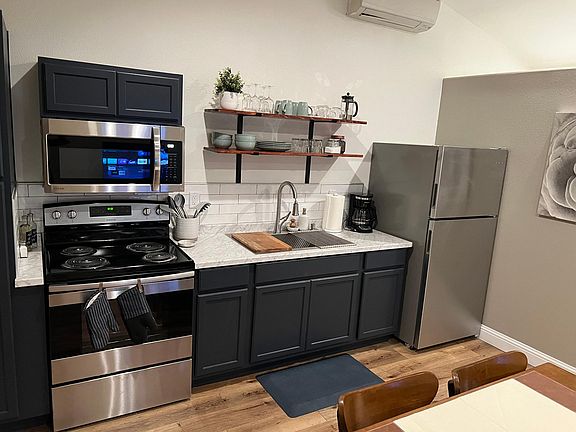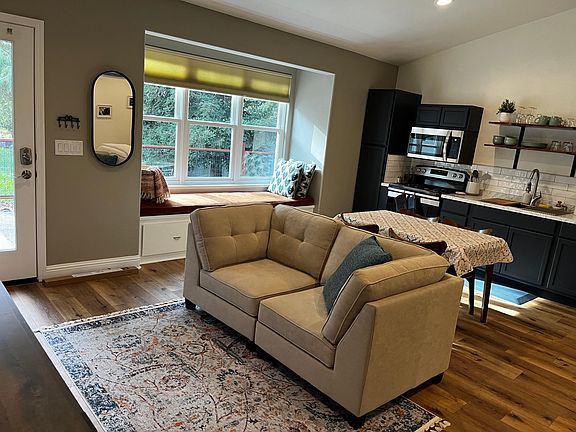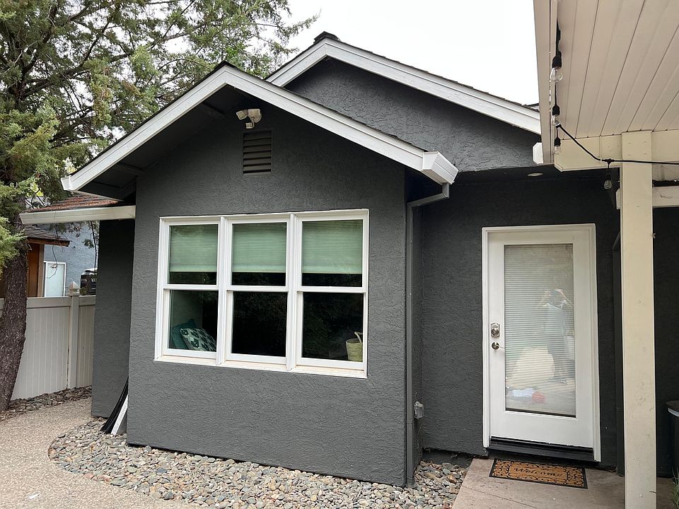 Attached to a single-family residence, this fully furnished private studio/one bedroom apartment offers a fresh, newly renovated space and a separate entrance with keypad lock. It is tucked away in the Ridgewood Estates Subdivision, a quiet neighborhood in northeast Redding that is minutes away from I-5, Simpson University, Shasta College, and Bethel. It is also less than 5 miles away from four hospitals. There are countless walking, hiking, and biking trails all around, as well as Whiskeytown Lake and Shasta Lake less than 30 minutes away. The property owners live on the premise and are readily available if concerns arise. The studio is attached to the main house, but is completely separated with a private entrance and fenced in areas. You will have access to your own parking spot in the driveway and there are security cameras on the house for safety purposes. Additional costs for more than one person. Certain pets may be acceptable on case by case situations; please message with questions. The studio comes fully furnished and includes: Kitchen: -Refrigerator -Stove -Microwave -Dishes/Silverware -Pots/Pans -Knives -Coffee pot/French Press -Toaster Oven -Table/chairs Living Room: -Sofa Couch -TV -Fireplace entertainment center -Wifi Bedroom: -Queen bed and linens -nightstand -dresser -shelf with rack for hanging clothes -full length wall mirror Laundry Room: -Washer/Dryer -Swiffer mop -Broom -Extra linens -Cleaning supplies -Ironing board Bathroom: -towels $500 refundable deposit. $100 cleaning fee. 30 day minimum rental. Utilities will be covered underneath the monthly rent. Tenants are responsible for adding their trash and recycling to the appropriate bins that go on the street prior to weekly pickup. Tenants are responsible for keeping the rental property clean, taking care of furniture, and immediately reporting issues that need to be fixed or taken care of. Any damage done by the tenant will be taken out of the deposit, with the excess charged to the tenant. No smoking. No drugs. No parties. There is one designated parking spot in the driveway available. Well-behaved and trained pets may be considered case by case by the property owner, with a $250 non-refundable deposit.