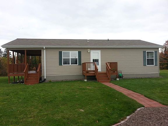Properties like this don't come along everyday! Open concept 2 bedroom, 1 bath home sits on 34.83 secluded acres only 1/2 mile from the Gile Flowage. On the main level you will find the kitchen with ample cabinet space with an island, dining area with a patio door leading to a large covered deck overlooking the beautiful yard, nice bright living room, full bath, laundry room, and two bedrooms. Downstairs you will find a nice bonus room, a 25' x 15' family room. This property has a perfect mix of open land and wooded. It also features a 26' x 36' detached garage. This home is move in ready!