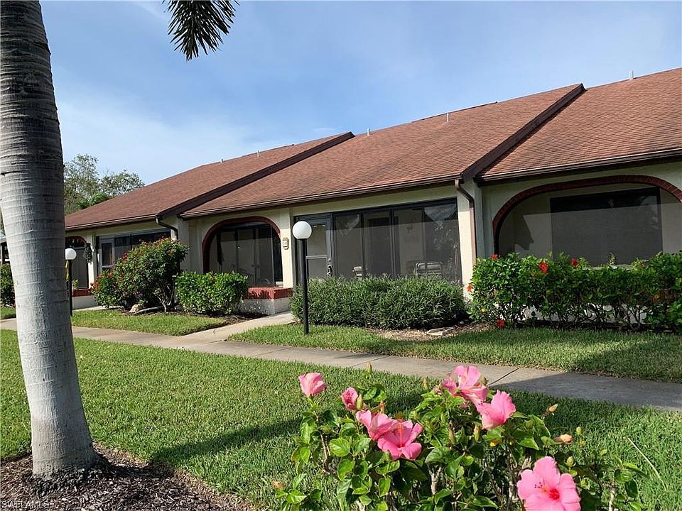 LOCATION, LOCATION, LOCATION!! Nice pool villa with beautiful furnishings ready for season! Come see the fantastic wood flooring throughout, corian counter tops, glass top range and even a lake view from the front lanai. The solar tube makes this unit light and bright. Enjoy 2 lanais, front and back with tiled floors and vinyl sliders for fresh air or AC. Just steps out your back door to the pool! Cinnamon Cove is a highly desirable gated community with a full time activities director, tennis, bocce, pickle ball, exercise room, dinners, entertainment, trips and more. Only 3 MILES to Fort Myers Beach, Bunche Beach and Sanibel/Capitva Islands, close to restaurants, hospital and shopping. Beautifully decorated and priced to sell, hurry on this one! Did I mention LOW condo fees?