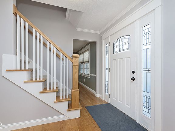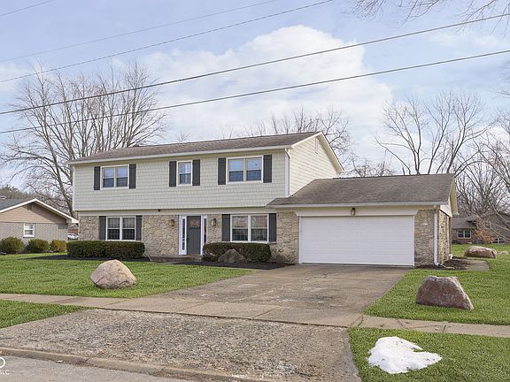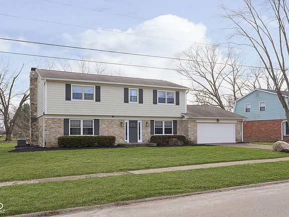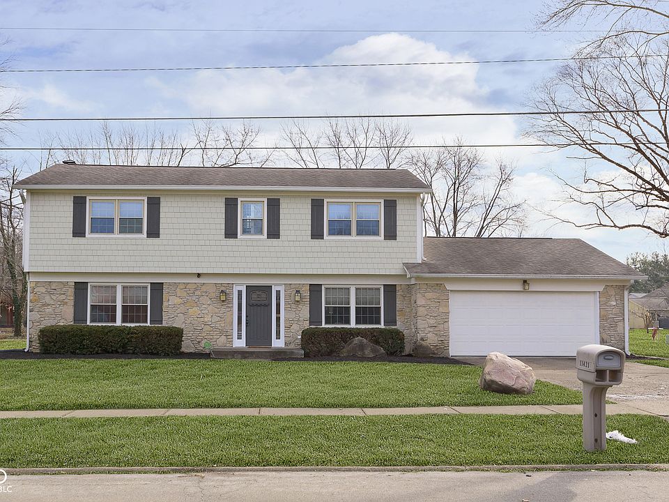This beautifully updated 4-bedroom, 2.5-bathroom home offers spacious living & an unbeatable location! The main level features beautiful solid hardwood flooring in the formal living room, dining room, & family room. The family room boasts built-in cabinets, crown molding, recessed lighting, & a stunning stone gas fireplace. The open kitchen is a chef's dream with stainless steel appliances(NEW Dishwasher/Refrigerator), upgraded countertops, tile backsplash, white cabinetry, & a deep Blanco sink. The adjacent laundry room includes front-load washer & dryer, tile flooring, & access to a covered patio & backyard. Upstairs, you'll find four oversized bedrooms w/NEW carpeting, ample closets, & overhead lighting. The primary suite includes a walk-in closet & an updated full bathroom w/a tiled shower & glass doors. The hall bathroom features double sinks, a Corian countertop, & inset shelving in the tiled tub/shower. The partially finished basement offers a theater room (TV included), two finished rooms w/recessed lighting, built-in shelving, & plenty of storage, including cabinets and a sink. Step outside to a large backyard, perfect for play or relaxation. The home also includes a finished two-car garage with pull-down attic access. Located across the street from Woodbrook Elementary, this home offers convenience for school events and an easy commute via Keystone Ave or Hazel Dell Pkwy. No HOA restrictions make this property even more desirable. Don't miss your chance to own this spacious, centrally located Carmel home!