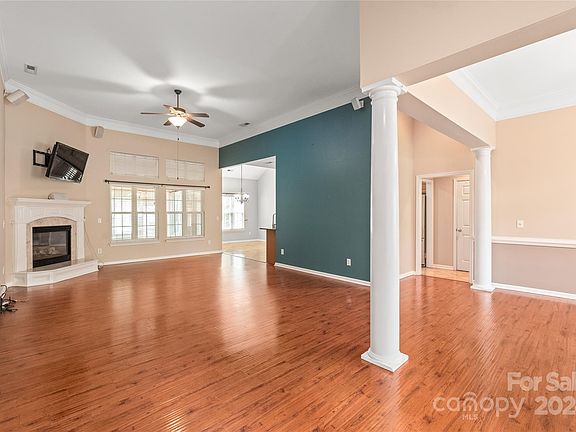 Experience the convenience of single-level living in this beautifully maintained ranch home in the highly acclaimed Porters Landing community! Located just minutes from Harrisburg, Mint Hill, and I-485 you cannot beat the location as it offers convenience with NO city taxes! No matter the season of life this 4 bed, 2.5 bath home will suit all of your needs with the spacious office, split bedroom floorplan, and formal dining room. Step inside and you’ll notice the many features including heavy crown molding, transom windows allowing light to pour in, and soaring ceilings. The eat-kitchen offers granite countertops, stainless appliances, bar seating and a tile backsplash. The primary suite features tray ceilings, dual closets and an updated ensuite offering tile flooring, separate vanities and walk-in shower! Relax in the stunning sunroom complete with tongue and groove cedar plank ceilings while overlooking the fenced backyard that features a custom fireplace and wired storage building!
