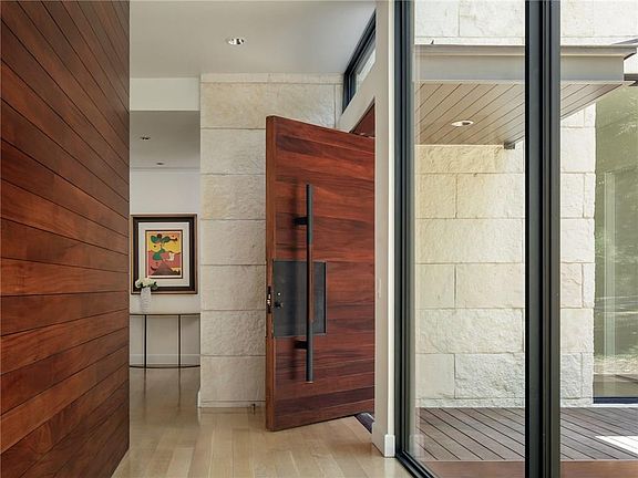 Designed by Texas architect Dick Clark, this masterfully designed home boasts exquisite attention to detail. Cantoni designed kitchen with Wolf & Subzero appliances, 12' ceilings, floor-to-ceiling glass sliding pocket doors bring the outdoors in, guest cabana, infinity pool, zip line, firepit, and situated on a large wooded lot with creek. Montigo fireplaces, museum finished walls & art-cove lighting add to this comfortable and luxurious home meant for living and entertaining indoors and out.