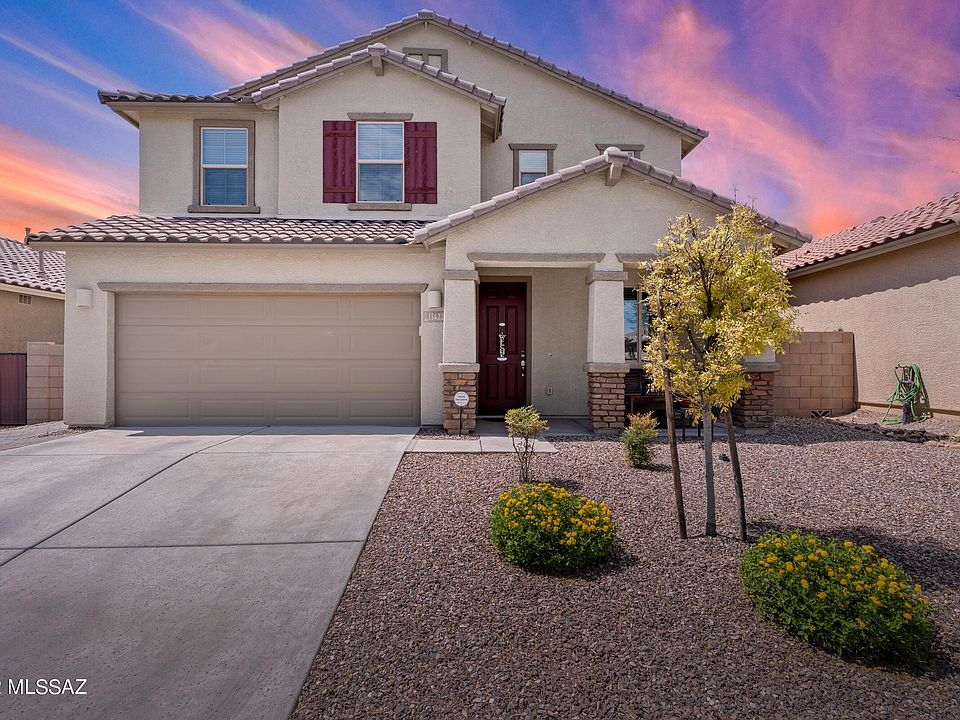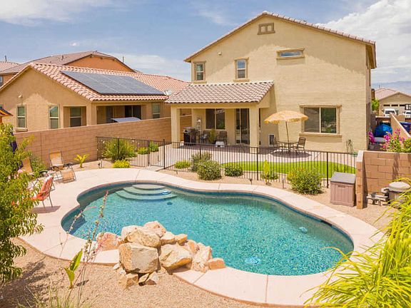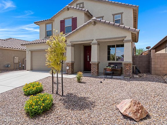 Beautifully maintained home in Mountain Vail Reserve that will capture you as soon as you enter the door. Designer touches throughout the home, such as beautiful granite counters in the kitchen, tiled showers in guest bathrooms, and a super shower in the primary room. This home features 5 bedrooms and 3 full bathrooms with one bedroom and full bathroom downstairs. The gourmet kitchen welcomes you with granite counters, with 42'-inch cabinets, a gas range, and stainless appliances overlooking the great room and opening out to the backyard. The Backyard is an entertainer's dream with a long covered patio with pavers leading to a pebble tech pool. Highly rated Vail School District & the easy access to I-10, U of A Tech Park & Davis Monthan Air Force Base.
