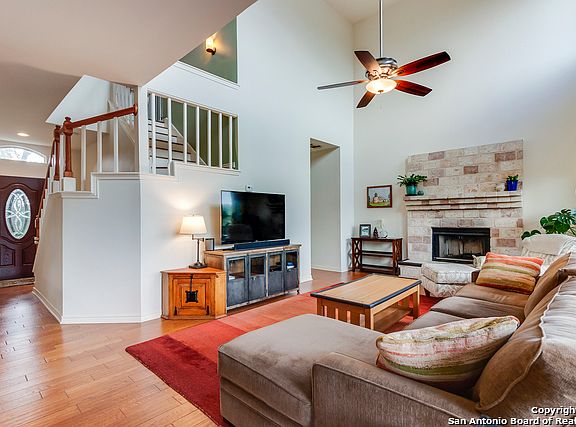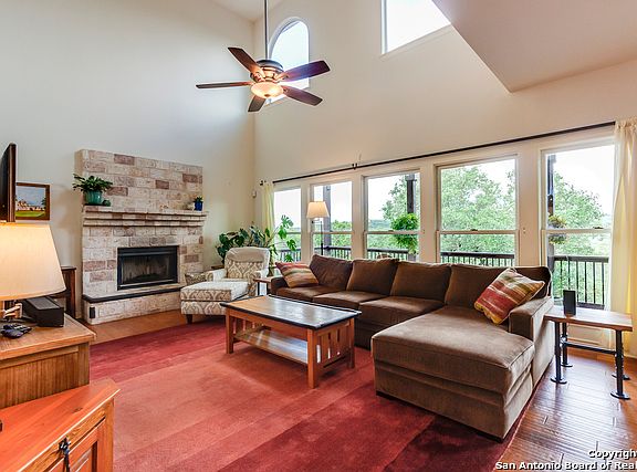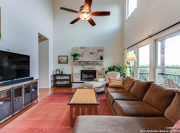 Amazing Views await you at this tastefully updated Hill Country home nestled in a serene setting! New Roof 2019, Gorgeous hardwood floors, kitchen has granite counters, stainless steel appliances, wide open to living room with soaring ceiling w/pretty fan and wood fireplace. Upstairs bedrooms newer carpet, deck w/view, large game room. Many new Large Windows for maximum views, tri level deck that takes advantage of rear green space, ECO friendly xeriscaping w/subsurface irrigation. Drip irrigation in front