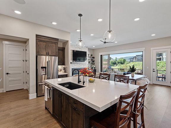 Set against the serene beauty of the Jordanelle Reservoir, this fully furnished home seamlessly blends luxury with nature. Thoughtfully designed to complement its surroundings, it features expansive windows and a trifold door in the living room, opening to a spacious deck, perfect for entertaining or unwinding in the fresh mountain air.