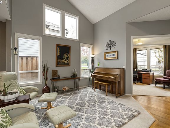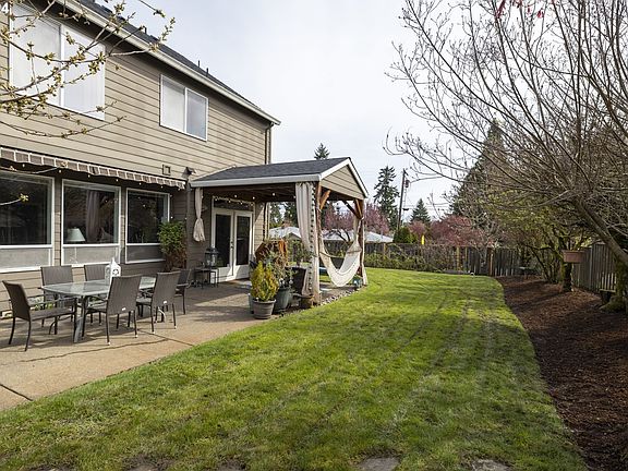 Model home in an exceptional neighborhood designed by renowned Street of Dreams builder, Renaissance Homes. You will appreciate the updated kitchen featuring granite countertops, maple cabinets and a custom tile backsplash that opens to the family room with a cozy gas fireplace and level back yard. The tasteful covered patio is ideal for grilling and adjacent to a large patio with a retractable electric awning that overlooks the manicured grounds with a large lawn and a wide variety of fruit trees and berries: apple, pear, cherry, blueberry, strawberry, marionberry, and blackberries. Double doors open to the master suite with crown molding and double sink vanity and a luxurious soaker tub. This home checks all the boxes with a vaulted living room, oversized 3 car garage with 8 foot doors and up to 23 feet deep, 4 bedrooms plus an office and a loft. New roof in November 2023 and a one year home warranty included. This incredible home exudes pride of ownership inside and out!