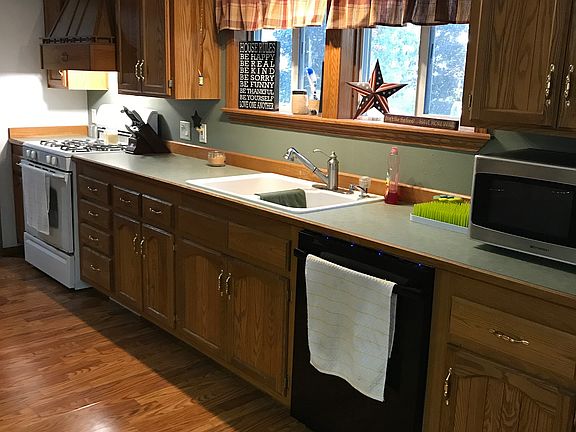 Country living close to town. This three bedroom home has an open floor plan and lots of storage. The kitchen features ample cupboards and counter space. Living room and dining area are open and offer a great view of the secluded back yard. The master bedroom has a large walk in closet and private bathroom with Jacuzzi. Outside offers many mature trees, a patio and fire ring. The two + car garage is fully lined and insulated. 34' x 45' 3 bay shop is fully insulated and lined. Shop has heat, water, floor drain and its own electric service. The shop also has a separate air compressor room with ventilation for indoor cooking.