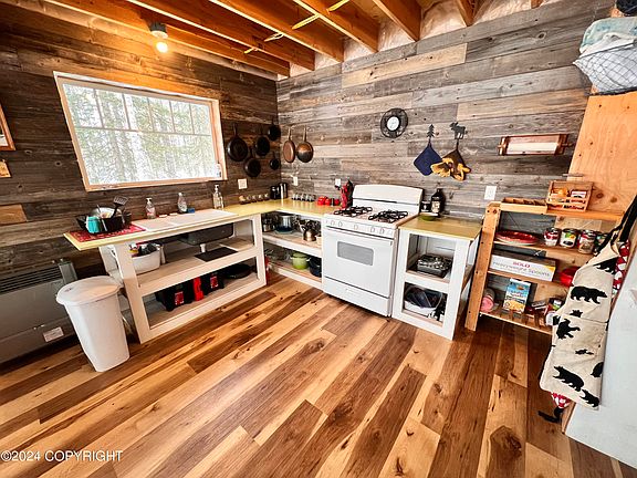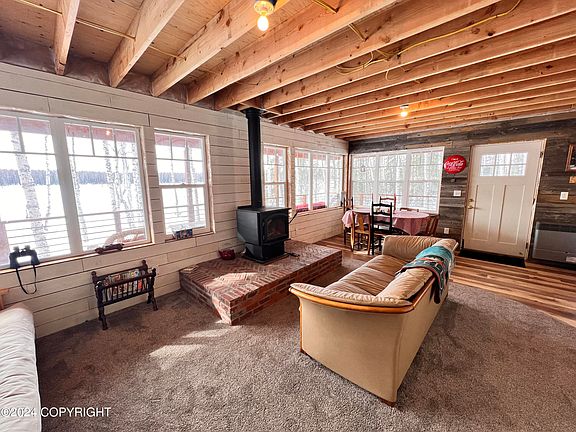 Lovely Cottage in the woods! Serenity, tranquility, peaceful days and peaceful nights. Simple times full of nature and the Alaskan outdoors. Enjoy the quiet non motorized Boot Lake from your own dock. Cabin features 3 bedrooms plus an additional storage or sleeping area. Bathroom has been framed in. Heat up with this wood stove sitting on a beautiful brick hearth to keep you warm and cozy!Two additional heat sources too! Electric is in and powered by generator. No monthly electric bills. On the Willow trail system for snowmachine, fat bike riding, and cross country skiing heaven to be reached. Both lots have been soil tested and can accommodate septic systems. Lot with the cabin on it has a well point, 15' down, fashioned with a hand pump for seasonal potable water. Did I mention the 6' wrap around deck? View the wildlife, neighborhood squirrel, cranes and moose while enjoying your coffee on the covered deck. Price includes BOTH Lots, each lot is 9+ acres. Each lot has about 30% heavily treed and the rest is marsh for a few inches down until you hit the gravel. Summer or winter, nature awaits you here. Don't wait, you don't want to lose this one!