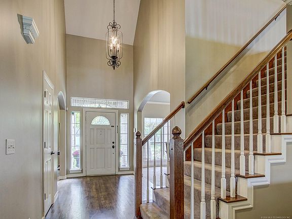 JENKS SOUTHEAST nicely updated on expansive lot. Several home office and/or home school options. Gourmet kitchen w/G.E. Profile appliances, granite, travertine,2 pantries.Open,light & bright. Hardwoods throughout.Master downstairs.Vaulted Living Areas w/awesome beams. 4 bedrooms up(one is a great guest area).Plantation Shutters.Super Floor Plan flexes 4-5 bedrooms/2-3 living areas!