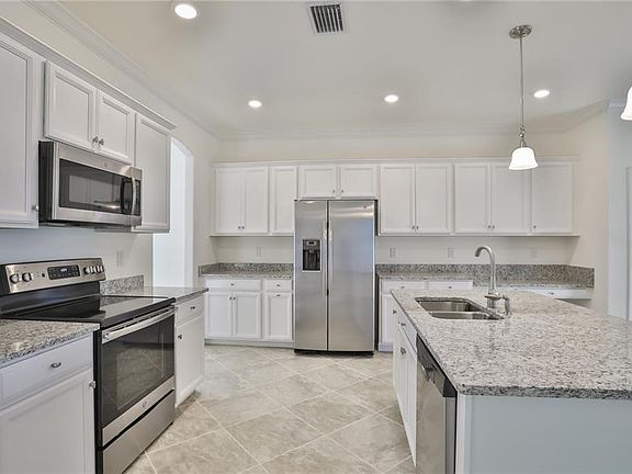 - Interior Features: High Ceiling(s), Crown Molding, Walk-In Closet(s), Solid Surface Counters, Eating Space In Kitchen, Kitchen/Family Room Combo, In Wall Pest System