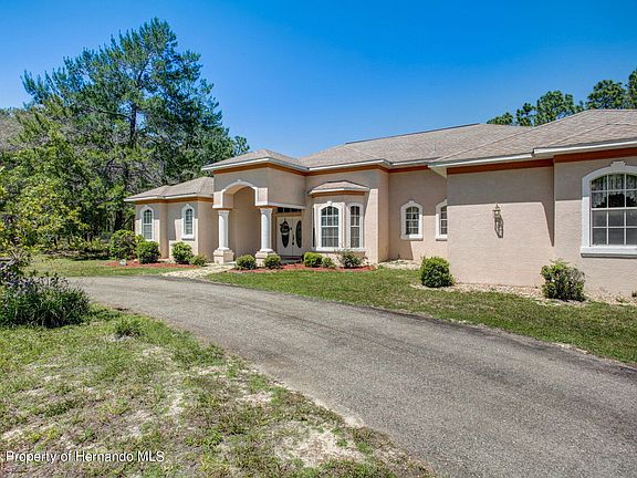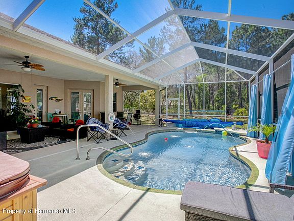 New Roof, Come to the Freedom of living rural Hernando County in this impressive Pastore Custom built home with Brand new roof just installed, with a new inground pool and new 24x25 extra garage, AC serviced yearly, and only about 20 min to the Gulf ,shopping and medical. Pulling up to the circular drive, this double lot .91 acre Fenced in pool home has 3 Bed+ den/3 full bath/2 car Garage + 2 car free standing garage its own electric panel and an RV parking area with a dedicated 50amp plug-in. Keep your toys safe and protected. Beautiful new Heated Salt water, fountain and screened in 28Ft pool . In this appealing pool area is a 2023yr Spa hot tub. Added an extra new shed for plenty of storage. So many ways to play at this spectacular Home.. Entering through the double door entry where you will find 15ft ceilings and all new flooring, greeting you with a view through to the lanai and pool area. Then head to this large open Kitchen with newer appliances , plenty of cabinets,10ft ceilings and built in pantry. This spacious open kitchen/family room area can be enjoyed for many hours of entertaining with friends and family. The Master Bedroom has a double door entrance, 10 ft ceilings, and another set of double doors that opens to the Lanai/pool area with hot tub. Just a great area to stop the day and relax . The large open Master bath has a garden tub and separate walk in shower, his & hers walk-in closets and vanity. The large Den is centered in the home, away from outside walls and is also considering it a safe room. The entire home is built to rap around the alluring pool and Lanai area for great outdoor living. The back yard is fully fenced for dogs and kids to have endless hours of fun play. Then cool off in the pool and have the best night sleep. This is a must see, Call today. Please give time for owner to collect the dogs. Best is after 4;30pm during the week, weekend are more open. However we can accommodate given enough time.
