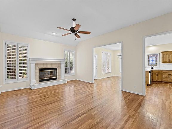 WELCOME TO THIS BEAUTIFULLY MAINTAINED REVERSE 1.5 STORY HOME IN PARK CROSSING! Bright and inviting open floor plan designed for comfort and functionality. Main level living features a spacious great room with cozy fireplace, seamlessly connecting to the dining area and kitchen—perfect for entertaining or everyday living. The timeless kitchen showcases stained cabinetry, granite countertops, stainless steel appliances, pantry and an eat-in area peninsula. Relax in the main level vaulted primary suite offering a private bath with double vanity, soaking tub, separate shower and walk-in closet. Second bedroom, second full bath and laundry room complete the main level. Finished walk-out lower level provides additional living space with family room, two additional bedrooms and full bath. Still plenty of unfinished space for storage! Enjoy outdoor living on the composite deck, patio and fenced backyard surrounded by mature trees. Fantastic location close to parks, dining, shopping and award-winning schools Olathe schools! Move-in ready and waiting for you to call it home!