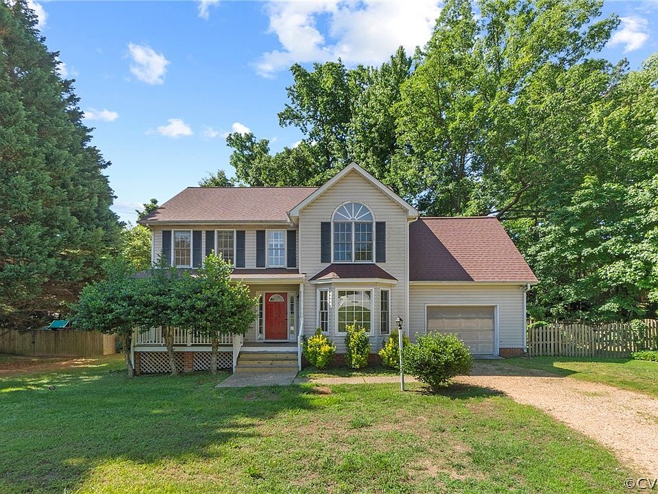 YOUR OPPORTUNITY TO OWN or INVEST IN A 5 BEDROOM HOME IN MIDLOTHIAN IS HERE. This home is being offered in its current condition, located in the desirable community of St. James Woods of Midlothian. This is your chance to invest some time and money for a quick turn around on value or make your mark and call it your own! With 5 bed, 2.5 bath and over 2,000ft2, this home offers a desirable layout, garage and private fenced in rear yard. Main floor includes a living room, dining room and expansive kitchen and family room with gas fireplace. Upstairs you'll find the primary bedroom with vaulted ceilings, walk in closet and ensuite bathroom. 4 more bedrooms complete the upstairs with a shared hall bath. Rear deck overlooks wooded and fully fenced in backyard. Convenient to schools, shopping, dining and major highways! If you're tired of seeing the same pallet on overpriced, flipped homes, don't miss out on this opportunity. It is your chance to enhance your equity while putting your own stamp on it.
