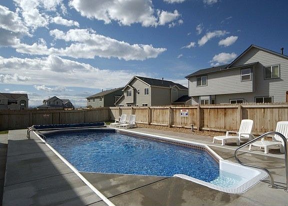 Beautiful 2 story quality built Oakwood home with full basement, 2 car garages and an awesome swimming pool. Easy commute on I-76 or hwy 85. Great location and neighborhood! Vaulted master bedroom with walk-in closet and 5 piece master bath, 2 additional bedrooms and a full family bath, plus a loft on upper level. Main floor dramatic entry vaulted living and dining rooms, well-appointed kitchen with food prep island, eating space with slider to pool, great room with fireplace, 4th bedroom o...