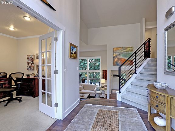Elegant. Sophisticated. Impeccable. In a word: special. Dramatic entry opens to 2 story great rm w/wall of windows overlooking green space & creek. Built to entertain w/open concept living, chefs kitchen & covered deck to dine alfresco. Gorgeous appointments incl new hrdwds, metal railing, plantation shutters, new fixtures, dual staircase & fresh int/ext paint. Handsome mstr suite w/renovated custom master bath. The ultimate in privacy & serenity. On quiet culdesac; 15 min to dwntwn/LO/Sellwood. [Home Energy Score = 1. HES Report at https://rpt.greenbuildingregistry.com/hes/OR10183051]
