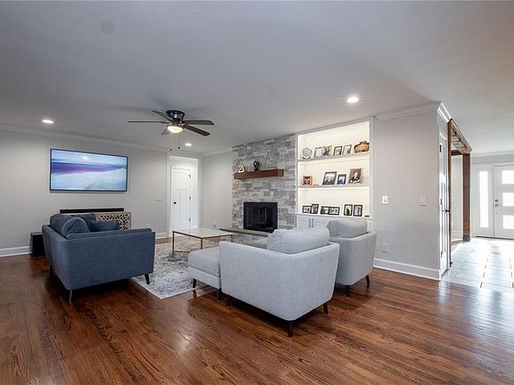 Stunning elevation. Stylish white brick home with a complementary black shingled roof. Gorgeous, lush, green grass/landscaping. Completely remodeled with high-end finishes and designer details. Hardwood floors through most of the home and recently added carpeting in the downstairs bedrooms. Dream kitchen with quartz countertops, stainless appliances, walk-in pantry and an abundance of cabinets. Double primary bedrooms with original one being downstairs with two secondary bedrooms plus a recently added primary retreat upstairs with a separate living area that could be an office. All baths have been modernized. Within the past 5 years all of the following have been added/replaced: HVAC, roof, guttering, plumbing, wiring, plumbing/lighting fixtures, flooring and appliances. Modernized electrical with screwless sockets, flips and dimmers. Rear entry garage with lots of attractive hardscape patio areas make this backyard the perfect private retreat.