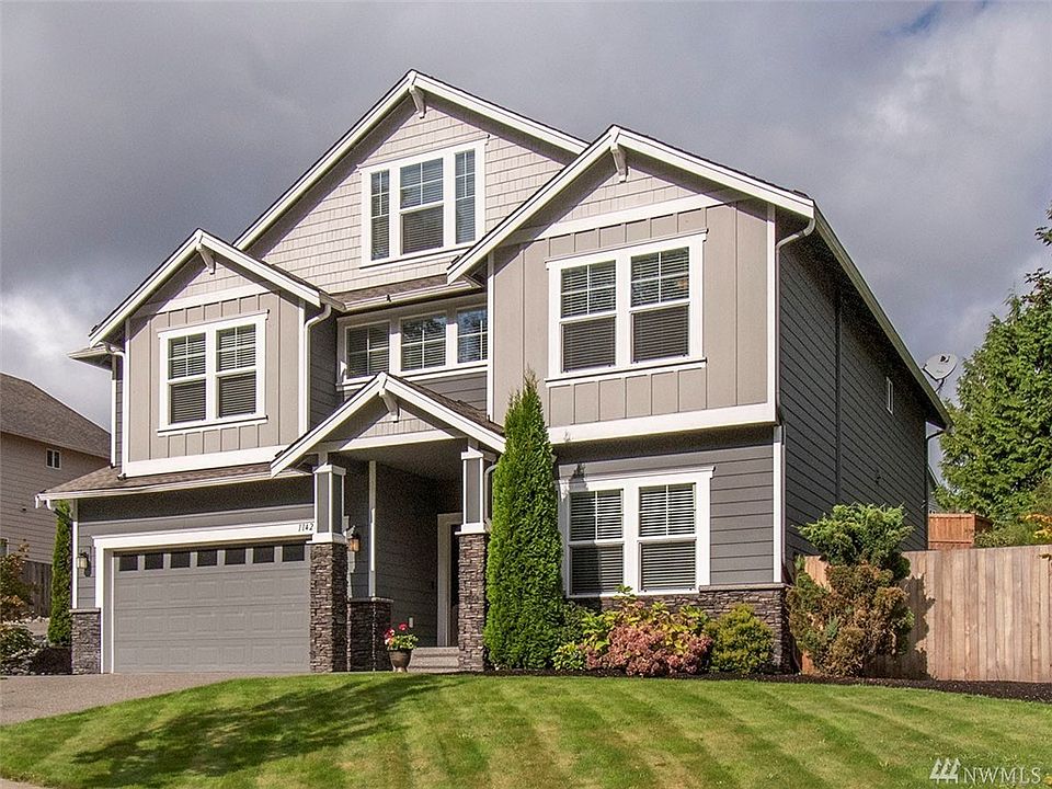Perched above the Snohomish Valley while close to everything. As you enter the covered front porch you are greeted by a light filled entry & home office w/ new Mowhawk hardwoods through out the main floor. Sprawling gourmet island kitchen w/ granite slab counter tops, double ovens & walk in pantry. Master Suite is 1 floor up along with 2 other bedrooms, full bath and a bonus room. Another full bath a 2 more bedrooms on the top floor. Beautifully landscaped private back yard oasis.