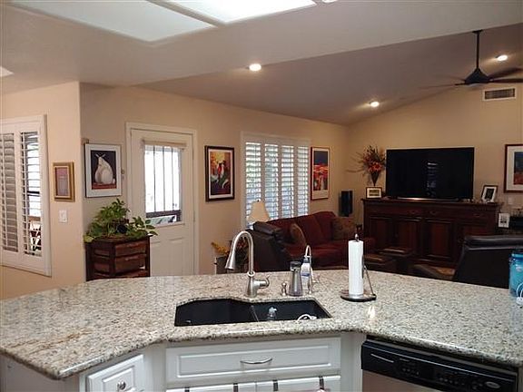 2022 square ft, very nice unfurnished house for year-round rental starting November 15th 2020. 3 bedrooms, 2.5 baths, 2.5 car garage. Pet friendly home, complete with a doggy-door. Washer/dryer/fridge/stove/microwave/dishwasher are also included. Built-in office. Quiet Cul-de-sac location, just down the street from Monterey Park. Very nice home with solar electricity, which cuts the monthly electricity bill significantly. The garage is also air conditioned separately from the main AC. Well developed back yard with an outdoor kitchen, water feature and finished landscaping. The back yard is protected by a privacy wall for your privacy. $1900 per month, plus utilities. 55+ Community with a ton of amenities. No smoking. One year lease. Small pets okay. Low electricity bill as the house has solar power.