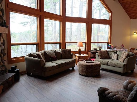 Little Spider Lake chalet style home is a nature lover's retreat! This very spacious three bedroom, three & half bath retreat has a 25 foot high, lakeside, wall of windows providing views that will knock your socks off. The well thought out open concept design has a wonderful flow. Features like the main floor laundry/mudroom right off the attached garage and the split master suit with private deck, perfect for relaxing with a book, watching nature, or another great view of the lake. The master also has a gas fireplace, walk-in closet, a bathroom with a tiled floor & shower, as well as a jetted tub and double sink vanity. The second floor offers a bedroom & full bath as well as a loft space to use as an office or guest space. The lower level is half finished with another bedroom, a full bath, a bonus area which could be used as a den with perfect views of the lake. A great mix of trees including a towering white pine that has an active Bald Eagle's nest.