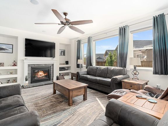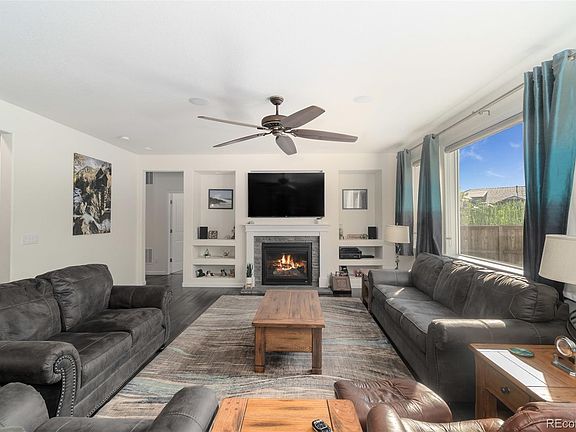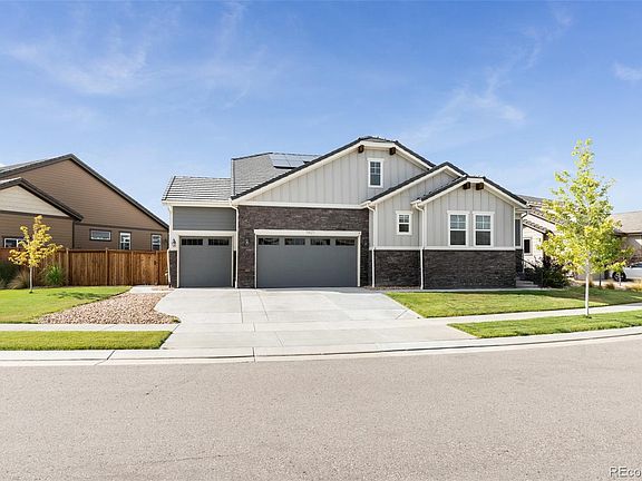 Stunning Ranch Style Home in the Villages at Buffalo Run just hit the market! This light & bright single level with a finished basement has over 3,300 sqft of living space with beautiful finishes throughout including gorgeous hand scratched engineered hardwood floors extend through all living areas as well as the extensive hallway, 9 foot ceilings on both levels and an open concept, ideal for entertaining. Home cooks will love the gourmet kitchen featuring granite counters, an oversized center island, stainless steel double ovens, gas cooktop, newer LG Refrigerator & a spacious pantry. Cozy up by the fireplace just steps off the kitchen on cool Colorado evenings. The spacious master suite includes a 4-piece bath & walk-in closet. A main floor study with french doors , 2 add'l bedrooms, full bath, powder room, large linen closet & laundry room round out the main level. Enjoy the latest technology with the Smart Nest Thermostat and Whole House Tech Package including surround sound! Save tons on monthly energy costs with the solar panels that convey with the property. The huge finished basement has a private 4th bedroom & full bath, great for guests & a large rec room for add'l entertaining. A large storage room with tons of space, built in cabinets and workshop is also located downstairs. Relax year-round on the covered patio overlooking the private yard with sprinkler & drip system. The 3 car garage is equipped with tons of storage & built-in shelving and cabinets. Ideally located within minutes of dining, daily conveniences & easy highway access. Book your showing today!