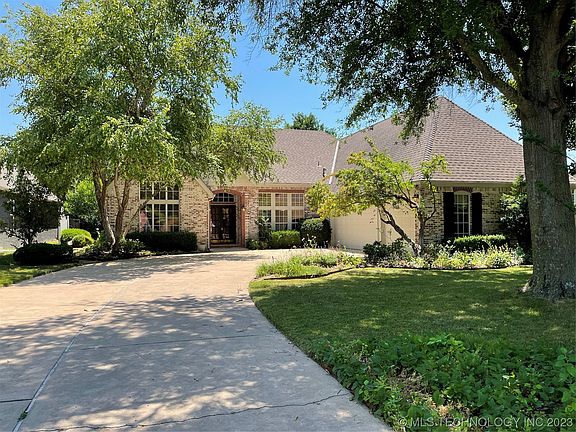 South Tulsa 1 level home on a cul-de-sac lot with mature trees. 9' ceilings, 4 bedrooms, 3 living areas, 2 full and one 3/4 powder bath. Spacious kitchen with bar stool space, large pantry and large eating space. Master bath has a whirlpool tub, separate shower, his/her vanities with wall of mirrors and large walk-in closet. All bedrooms have walk-in closets. 4th bedroom has been used as an office. 3 car side entry garage with a tornado shelter, sprinkler system plus a whole house Generac Generator that remains with the home. Bring your personal designer ideas. Really nice neighbors too...