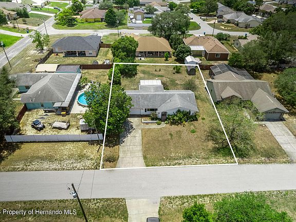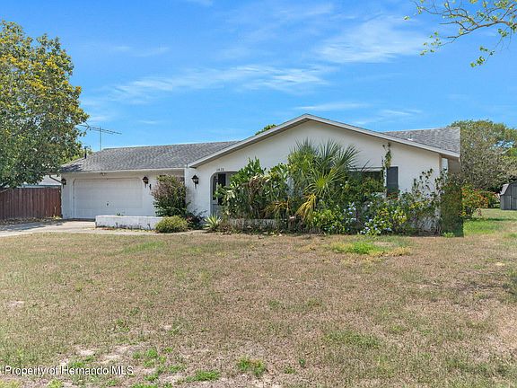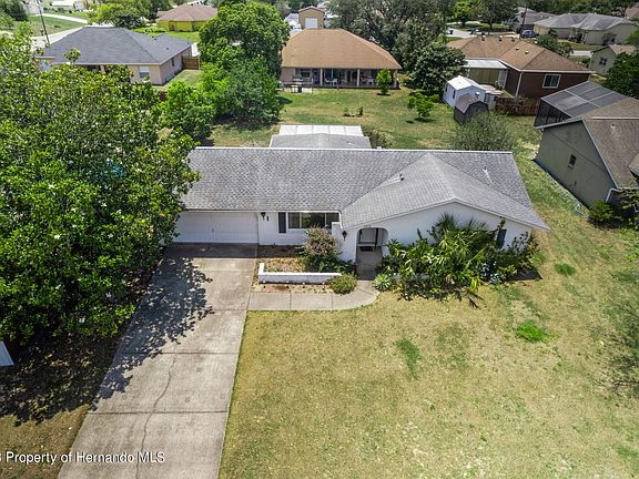 Active with contract - accepting backups. Are you ready to make this house your ''home sweet home''? Whether you're buying a home for the first time or downsizing, this Spring Hill gem is waiting for you. An open floor plan unfolds from the front entrance with soaring vaulted ceilings adding a sense of spaciousness to the living and dining rooms. Curl up and binge on episodes of Ted Lasso or host an intimate dinner party with your nearest and dearest. A bright galley-style kitchen boasts tons of cabinet and counter space so you'll have all the room you need to whip up a fresh batch of snacks or a three course meal. A short hallway leads to both bedrooms; on the left, the primary bedroom has a large closet for your storage needs; the ensuite primary bathroom has a tub/shower combo. The guest bathroom features a step-in shower. Glass doors in the dining room slide open to reveal a bonus room that, in a former life, was a Florida room. If added to the central air, it could provide some extra flexibility to your living space as a home office, craft room, playroom, home gym, or a modest family room and den. Another set of glass sliders opens to an acrylic-enclosed lanai with hurricane windows where you can enjoy a view of the big backyard in comfort, sweet tea in hand. Park your grill on the small open patio just outside the lanai and barbecue to your heart's content in the summer months. You don't have to worry about any HOA fees or restrictions in this peaceful neighborhood, either. A centralized location in the heart of Spring Hill means you're close to everything, from shopping and dining to parks and entertainment. That includes locally-owned favorites like Papa Clyde's Two Ice Cream, Jam's Cafe, Copacabana, La Plazita, and more. Head to Murphy's Market for the freshest produce and amazing deals at the deli and butcher's counter. Rotary Centennial Dog Park, Veterans Memorial Park, Delta Woods Park, and Weeki Wachee Springs State Park with its small craft launch and world-famous mermaids all fall within a 5-mile radius. Popular swimming spots like Roger's Park and Pine Island Beach are only a short trip northwest. An entrance to the Suncoast Parkway/Veterans Expressway isn't far, so Tampa and its amenities, like the international airport and beaches, are easily accessible. Make your appointment to view this one before it's gone!