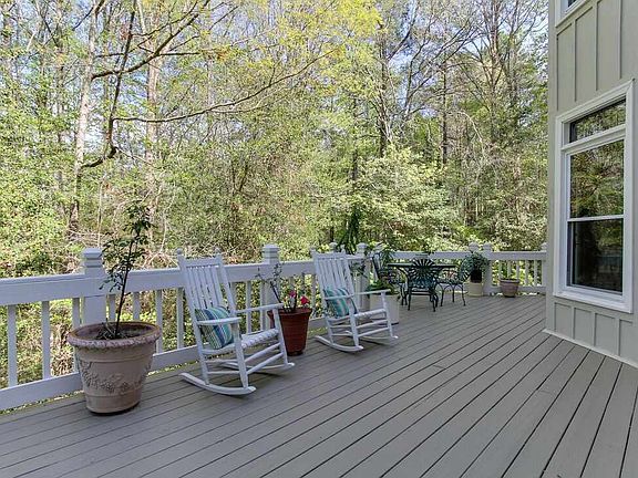 Beautiful light-filled home on approx. 4 acres adjoining Falls Lake land. Tom Gipson custom-built in prime N Raleigh location. Timeless design. Elegant and cozy with craftsman-style features. Copper accented roof. Custom stained glass windows, custom fixtures, woodworking, poured concrete foundation. Serene woods and wildlife can be viewed from multiple decks, porches, and balconies. Two story detached garage. Pasture land borders beautiful Sexton Creek. Large lots adjoining. Private road. AT&T Fiber.