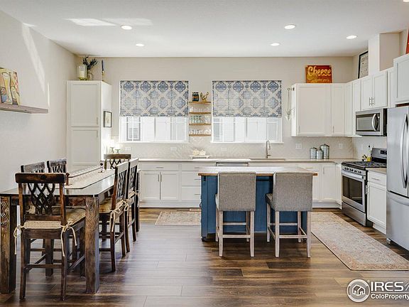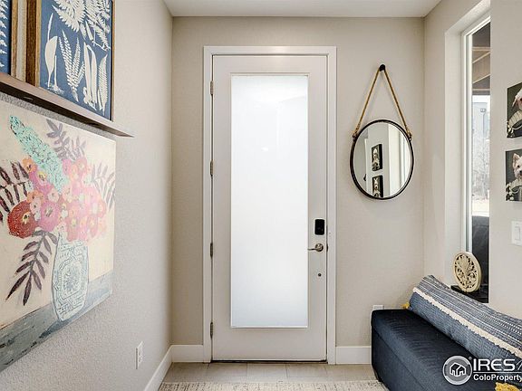 Modern design marries inviting warmth in this welcoming Broomfield residence. A fenced courtyard and covered front porch draw residents into an entryway with a rare and convenient half bath. Engineered hardwood floors flow into a sprawling living space with seamless access to a private balcony through sliding glass doors. The nearby chef's kitchen flaunts an abundance of cabinetry, open shelving, quartz counters and stainless steel appliances. Retreat upstairs to a primary suite crowned by vaulted ceilings with a blissful en-suite bathroom, complete with dual vanities and a walk-in shower with a bench. A spacious closet affords storage for multiple wardrobes. The secondary bedroom suite is just as luminous, offering flexibility for guests or a home office with easy access to the bedroom-level laundry area. This home is perfectly situated just moments away from Arista's Town Center where trendy restaurants, shops, a dog park and transit options create an elevated Colorado lifestyle.