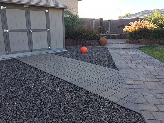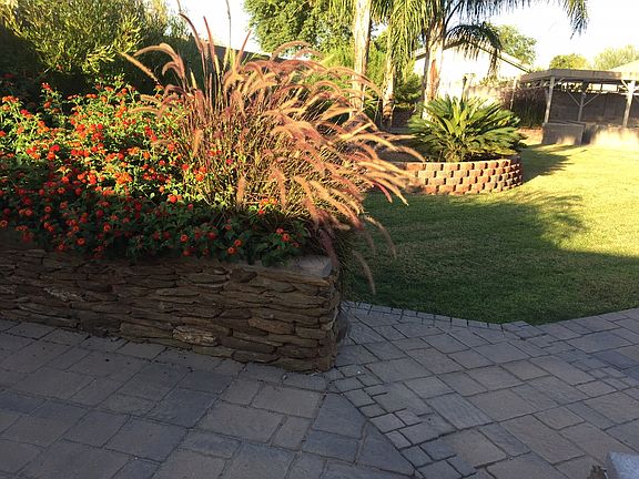 Build in 2002. Three car garage with No HOA! Split Floor Plan with 4 Bedrooms and 3 Full Baths (updated granite in main bath and guest suite bath). Separate Living-Dining Room and Den, Large Family "Great-Room", Eat-In Kitchen with Huge Island/Breakfast Bar with updated granite, Large Pantry, Oak Cabinets, and Built-In Microwave & Dishwasher, Bedroom guest suite has own bath with updated granite. Vaulted Ceilings, Accent Paint, Custom wood shutters in all windows, (except 3rd and 4th bedroom windows have 2” Blinds), Ceiling Fans, Raised Panel Interior Doors, Bay Window in Owners' Suite, Dual Sinks and Walk-In Closet in Owners' Bath. Additional Cabinets in Laundry Room. Lots of beautiful tile through-out the home (in 2008) and new carpeting (in 2016) in 3 bedrooms and the den. Full Length Covered Patio with 5 Fans, Back yard has large storage shed on concrete slab, Lots of pavers in back and side yards with large grassy area and a corner retreat, Also a concrete block raised vegetable garden area – full irrigation in front and back yards.