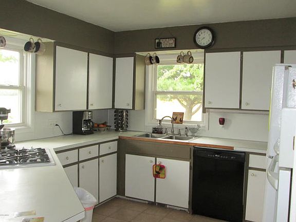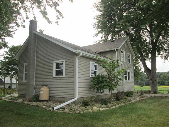 Super clean country farm house totally updated and remodeled on 1.2 acres with 2 barns. Presently a 2 bedroom home, but could easily be a 3 bedroom home. Newer carpet, replacement windows, new gutters, roof re shingled 3 yrs ago, interior has had new drywall & is painted throughout. Water softner, 100 amp service, central air, LP heat, patio of rear of home. Outside wood furnace for cheap heat. This is a real nice country home.