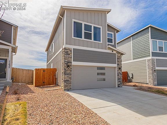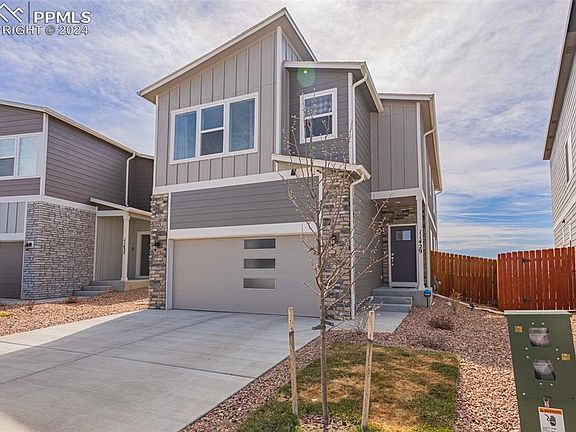 Welcome to this beautiful newly built two-story home, where modern design meets functionality. Step inside to discover an open-concept floor plan, thoughtfully designed for effortless entertaining and comfortable living. Admire the breathtaking mountain views from expansive windows that illuminate the space with natural light. The kitchen boasts sleek stainless steel appliances, perfect for culinary enthusiasts, while luxury vinyl plank flooring throughout the main level adds a touch of sophistication. Fully fenced and landscaped backyard provides the perfect setting for gatherings. Upstairs, retreat to the spacious primary bedroom and indulge in the luxurious en-suite bathroom complete with a large walk-in closet, offering ample storage space. Two additional bedrooms and a full bathroom provide versatility and comfort. This home offers a sanctuary of modern living amidst picturesque surroundings.The location provides easy access to Marksheffel, Fort Carson and Peterson military bases and is moments away from shopping and restaurants.