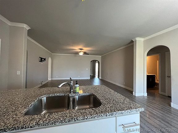 Welcome to your dream home at 11429 S Adams St in Jenks, Oklahoma! This stunning 4-bedroom, 3-bathroom single-family residence offers 1,821 square feet of modern living space, designed for comfort and style. Built in 2019, this home features an open floor plan with high ceilings, creating a spacious and inviting atmosphere. The gourmet kitchen boasts granite countertops and comes fully equipped with stainless steel appliances, including a dishwasher, microwave, range/oven. The in-unit laundry adds to the convenience. The master suite provides a serene retreat with its en-suite bathroom, while three additional bedrooms and two more bathrooms ensure ample space for family and guests. The home features tile and carpet flooring throughout. Parking is a breeze with an attached 3-car garage. The property is situated in a community that offers amenities such as a playground and is conveniently located near Jenks West Elementary School, Jenks Middle School, and Jenks High School. Don't miss the opportunity to live in this beautiful home that combines modern amenities with a prime location. Experience the best of Jenks living at 11429 S Adams St! No smoking allowed. No appliances provided. Lawn care and maintenance not provided by landlord. All utilities are the responsibility of tenants.