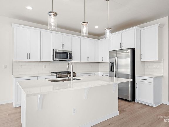 COMPLETED HOME - “The Moonstone” by Richmond American Homes. Spacious and accommodating, this two-story plan features an open-concept main floor and four generous upstairs bedrooms. Just off the entry, you’ll find a secluded study and a convenient powder room. Other highlights include a great room and an inviting kitchen with a walk-in pantry, center island and adjacent dining area. Upstairs, discover a laundry, a versatile loft and a sprawling owner's suite with an attached bath and expansive walk-in closet. Front and back landscape and sprinklers along with full backyard vinyl fencing INCLUDED! 9' ceilings and tankless water heaters INCLUDED! This community showcases a farmhouse-inspired clubhouse, community pool, walking paths along a meandering creek. Stop by our furnished model home 11185 W Campanula Ct., Star, ID 83669 and ask about our special offers. Restrictions apply.