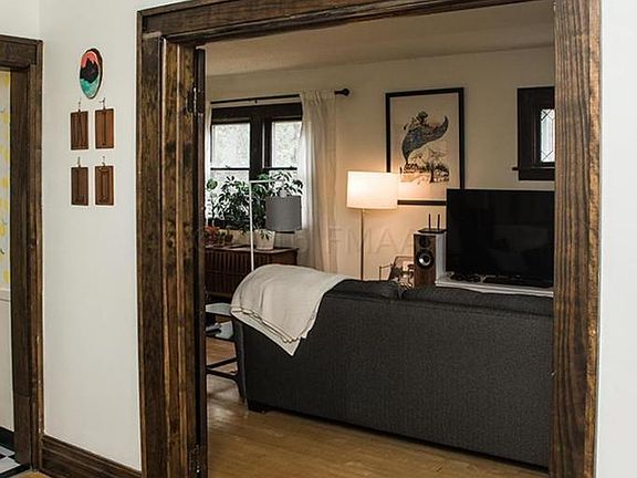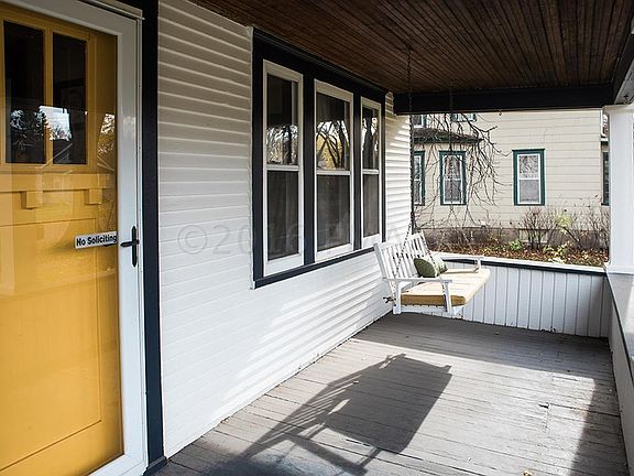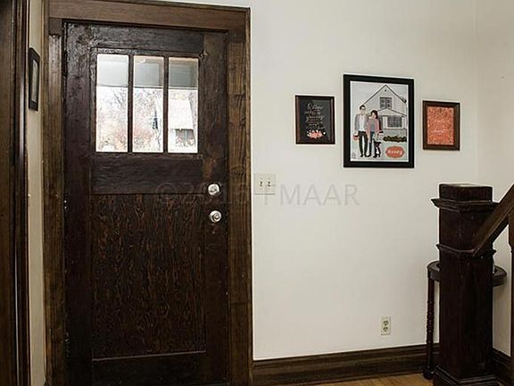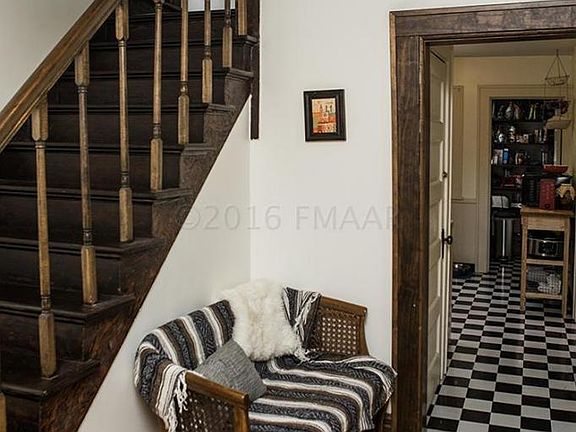 Adorable North Fargo character home one block from Horace Mann elementary. Loads of charm: original hardwood floors, banister & woodwork, front porch w/swing & ceiling detail, vintage wallpaper, clawfoot tub, French & glass panel doors & more. Cozy den, play area or 3rd bedroom on the main w/walk-out to large backyard deck. Formal dining space w/reclaimed wood table included. Oversized master bedroom w/balcony that overlooks private yard. Second bedroom & full bath up! Semi-finished lower level w/storage, 1/2 bath, laundry & 4th bedroom/family room w/egress. Gas forced air & central air. 24x26' garage w/alley access. Fully fenced, mature trees & great North Fargo location. Cute, clean & move-in ready!