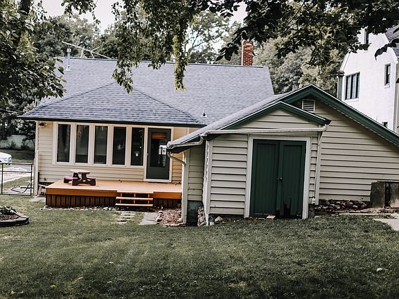 Virtual home tour---> https://youtu.be/95rVvlet7QQ NEW ROOF! Sheeting and shingle replacement done 7/11/19. Charm & Class permeate this 1920's Bungalow located in Roosevelt / Waveland area. It has the character you want from a home built in 1925 w/gorgeous, hardwood floors;extensive woodwork;original built-ins & nooks, to name a few. This home provides ample storage throughout. Something you don’t usually find in this area. Brick fireplace in the great room is perfect for Iowa winters. Lg dining rm w/wainscoting give space for family & friends. Two nice bdrms-one w/double closets & built in vanity- both near the undated bathroom. Updated,Kitchen w/cafe booth,glass-front cabinets,dove-tailed drawers - all appl remain. You will love the light-filled Four Season Rm - with wonderful view of the lovely fenced yd w/mature trees. There is about 380 Sq' fin in the full LL w/a nice 3/4 bath & partially fin space. The home has new vinyl siding, 2 car gar (half is set up as a workshop), sump pump added in 2010, HVAC in 12/11,new driveway concrete in 2013,a super deck & so much more.The oak stairs lead to the unfinished (plumbing completed) 2nd level-waiting for your touch.Terrific location - minutes from everything.