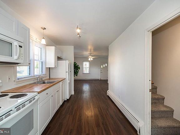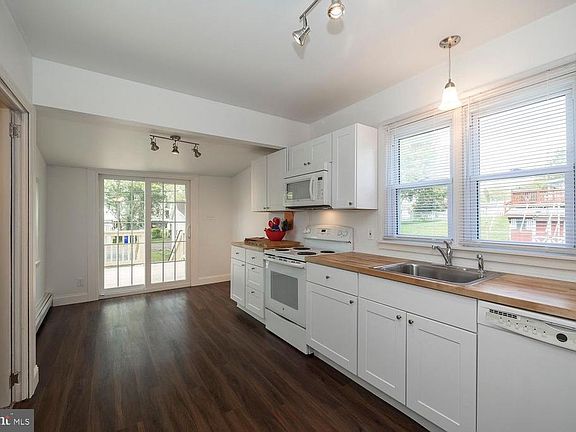 This one just shot to the top of your list! Remodeled bungalow with all new wiring and electric panel. Newly insulated. Walk on to an adorable front porch, perfect to rock on. Walk into the open floor plan that includes living room, dining, and kitchen. Eye-catching new dark hardwood snap-in vinyl that wears well and looks great and enhances this home throughout the 1st floor. New kitchen with white cabinets, butcher block countertops, white dishwasher, glass-topped oven, built-in microwave, and refrigerator. Track lighting, new sliding glass door that opens to the new 9 x 9 deck. 2 first floor bedrooms and a remodeled hall bath with new tub, vanity and toilet. Upstairs has a large bedroom with new carpet and a new full bath with tile shower and floor. Basement is unfinished. laundry in the basement and generator (genarac) so you won't get stuck without power (buyer needs to hook up and propane bottle). Off street parking in back. Cute yard. Convienent to shopping and great Pottstown restaurants.